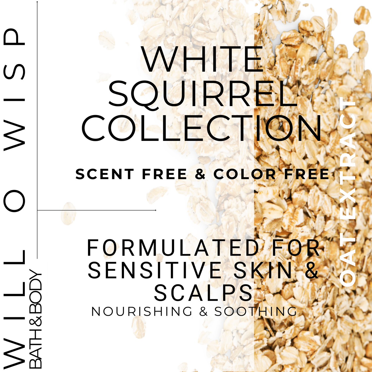Named after the population of albino Eastern grey squirrels that have called my small town home for decades, the Will O Wisp White Squirrel Collection is always scent & color free. Thoughtfully formulated for those with even the most delicate skin.