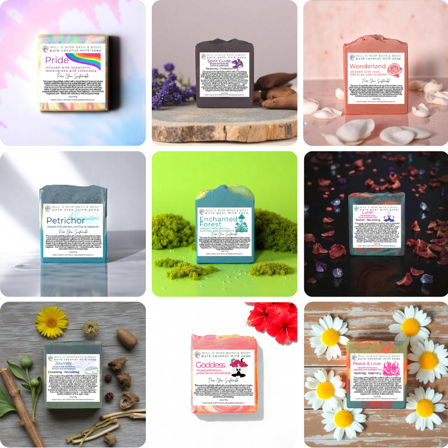 Every Will O Wisp creation is handcrafted with plant-based ingredients, phthalate-free fragrances, and biodegradable materials — because taking care of yourself (and the planet) should never be scary.